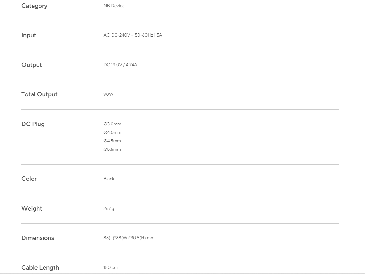 POWER ADAPTER ASUS UNIVERSAL 90W 3-Pins