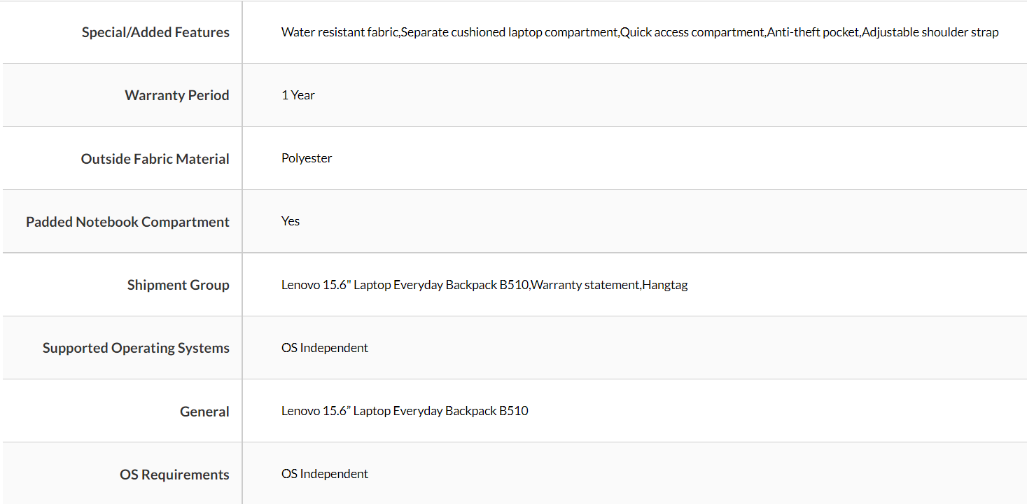 Made from high quality water-repellant and tear resistant materials, the Lenovo 15.6″ Laptop Everyday Backpack B510 built for the daily grind. It fits up to 15.6″ laptops with a main compartment that is spacious enough to carry personal belongings for the gym, a business trip, or everyday life. It also features a quick-access pocket and two-side pockets for additional storage space.