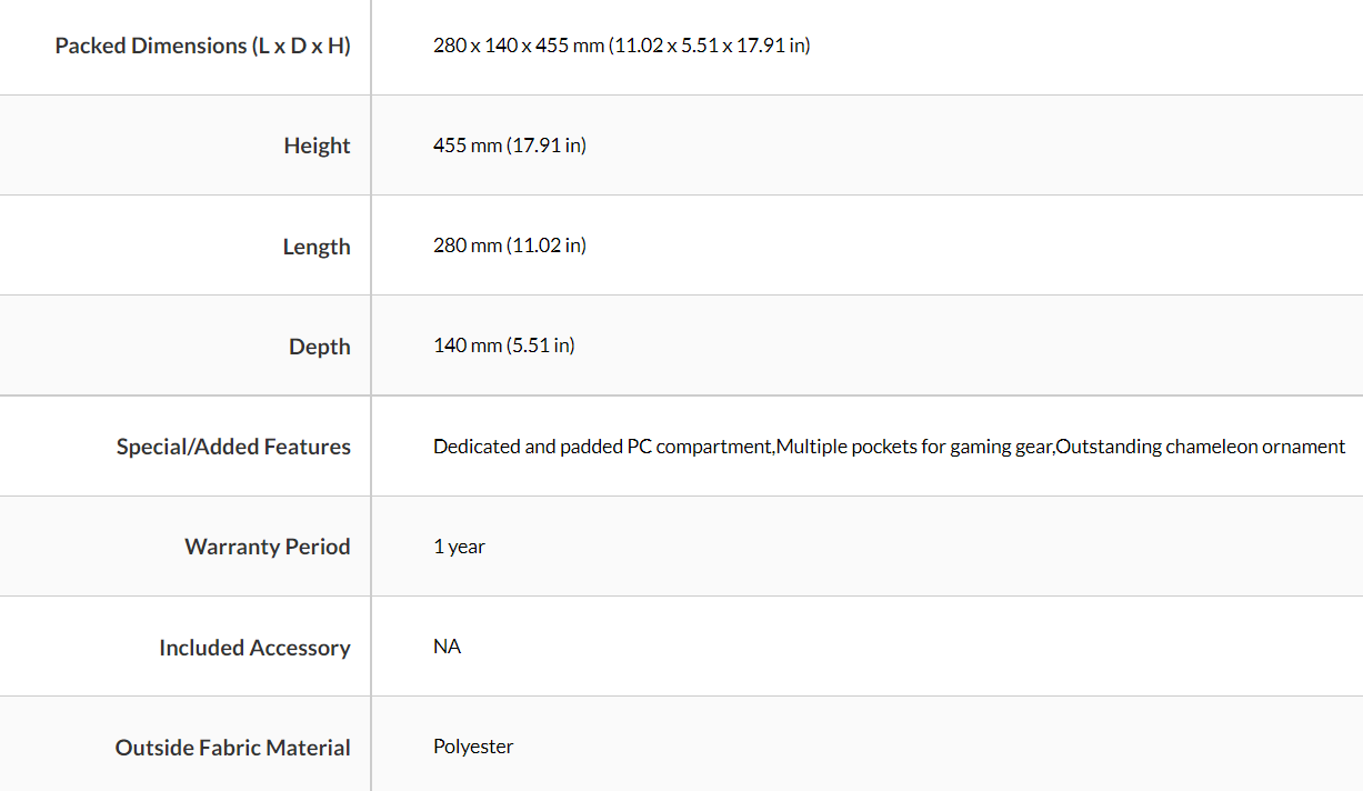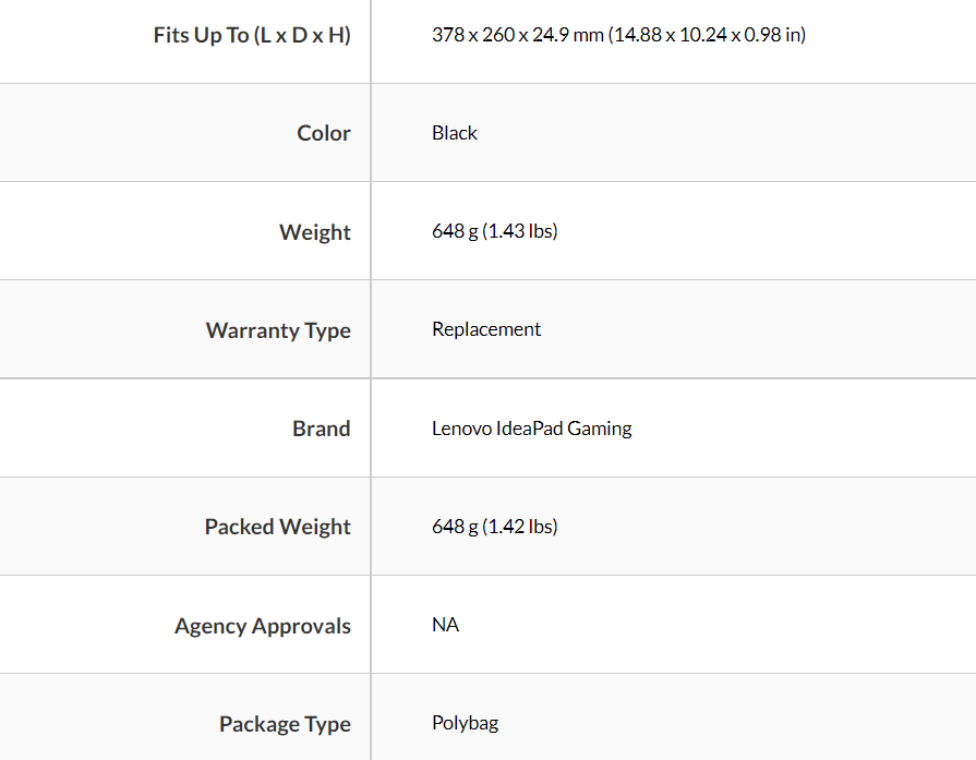 Crafted to be sleek yet versatile, it blends into any environment like a chameleon. It’s water-repellent, scratch-resistant outer materials keep your gear organized and protected inside the internal padded pockets and storage compartments. Padded internal compartments effortlessly store your laptop, headset, mouse, and power bank while the stretchy side pockets keep your necessities within reach. Take the burden out of keeping your gear on you thanks to the IdeaPad Gaming 15.6-inch Backpack’s ergonomics, well-padded back support and adjustable shoulder and luggage straps.