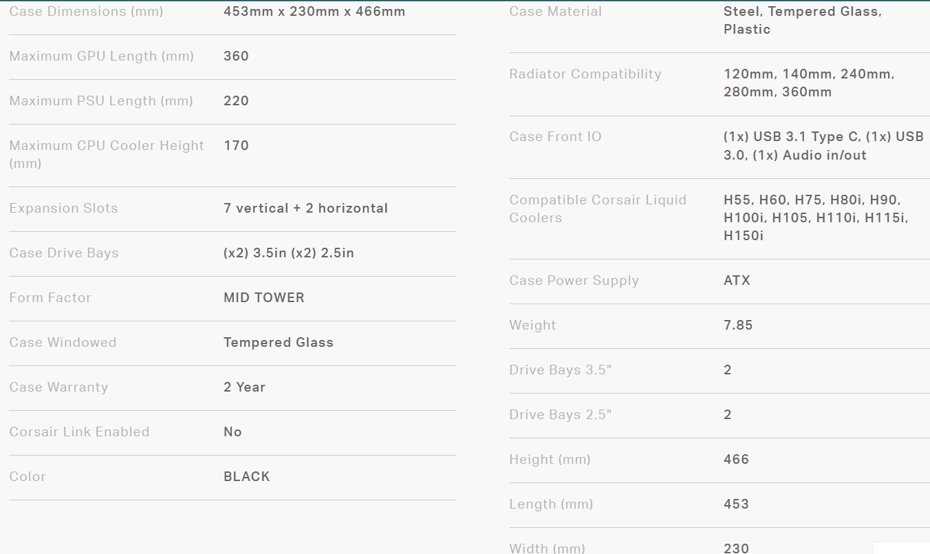 CASE CORSAIR 4000D AIRFLOW TG MID TOWER BLACK
