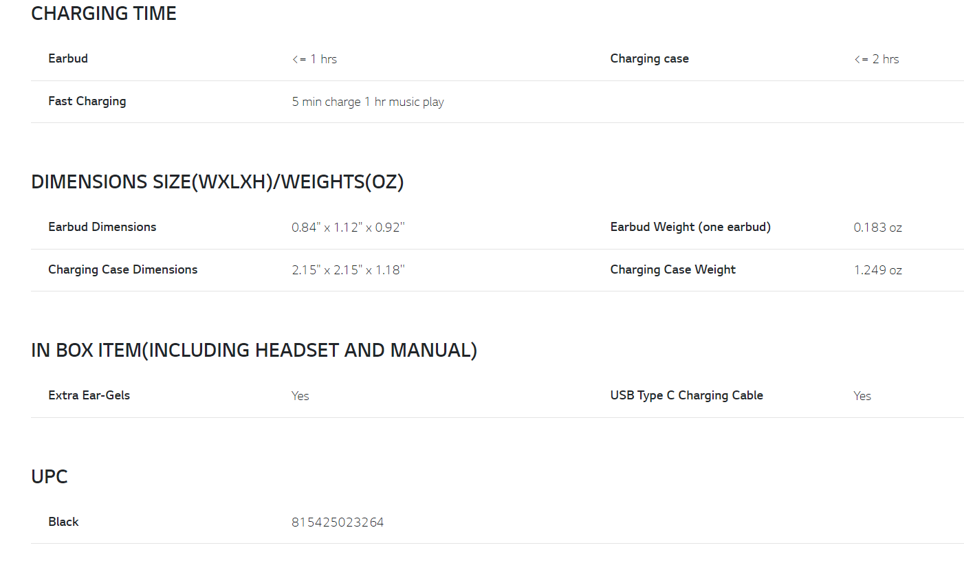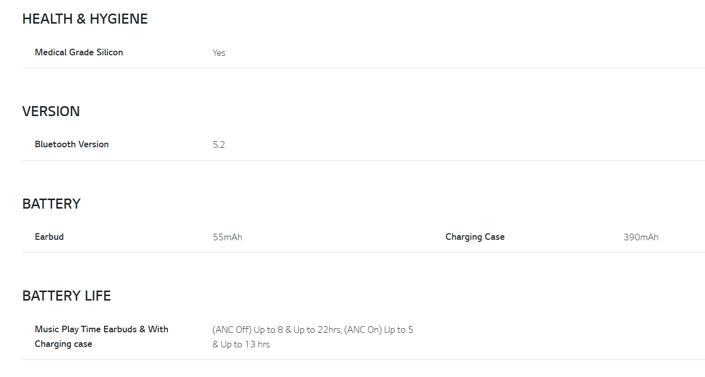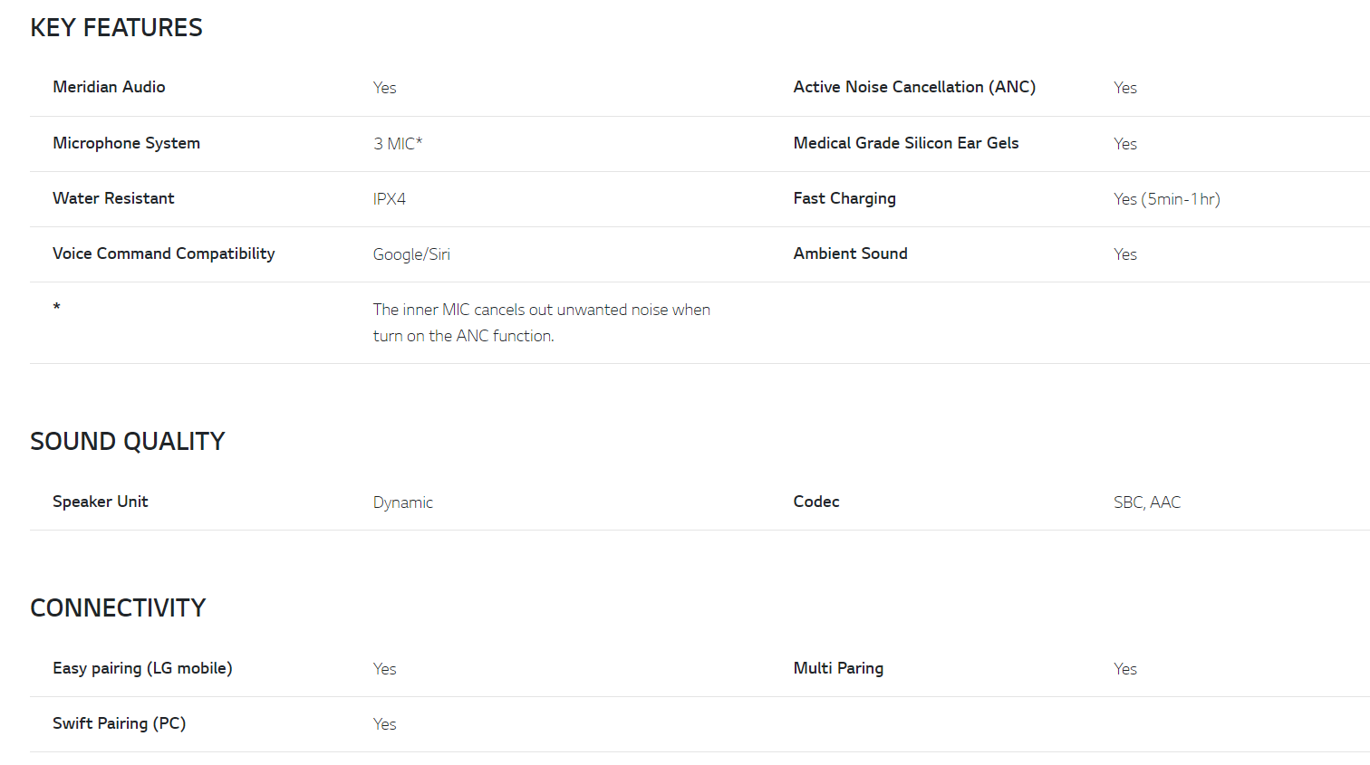EARBUDS LG TONE FREE FP5 TRUE WIRELESS BLUETOOTH ANC BLACK