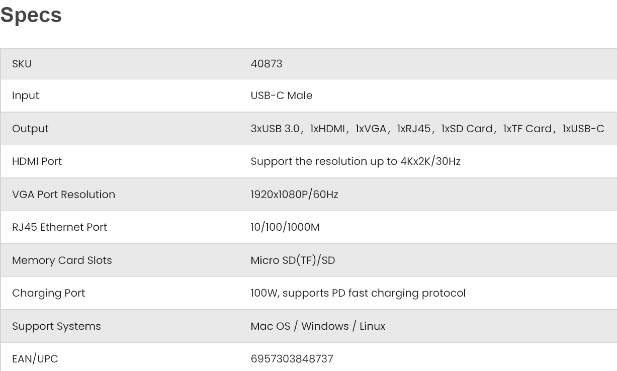 ETHERNET ADAPTER UGREEN USB-C-9-IN-1 HUB GRAY