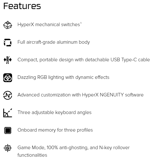 KEYBOARD HYPERX ALLOY ORIGINS CORE RGB MECHANICAL ENG AQUA