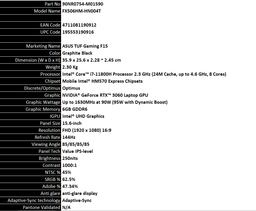 | MONITOR IN INCHES | 15.6" |