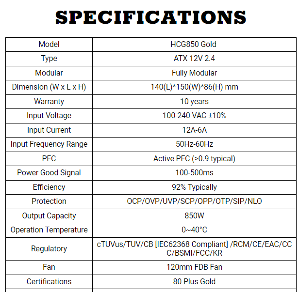 PSU ANTEC HIGH CURRENT GAMER 850W 80+ GOLD FM