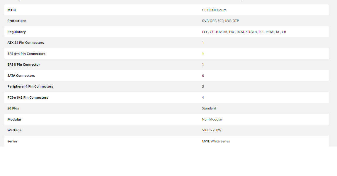 PSU MWE650 WHITE V2 650W 80+ STANDARD 230V EU