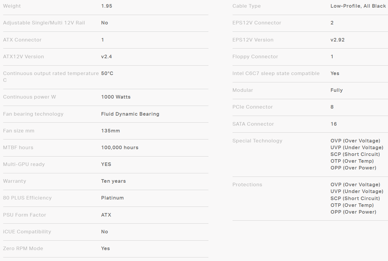PSU CORSAIR HX1000 1000W 80+ PLATINUM