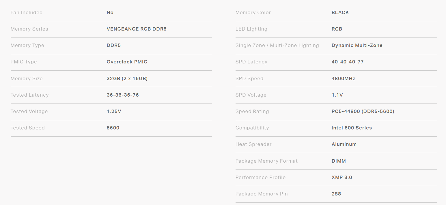RAM CORSAIR VENGEANCE DDR5 RGB 5600 2X16GB BLACK