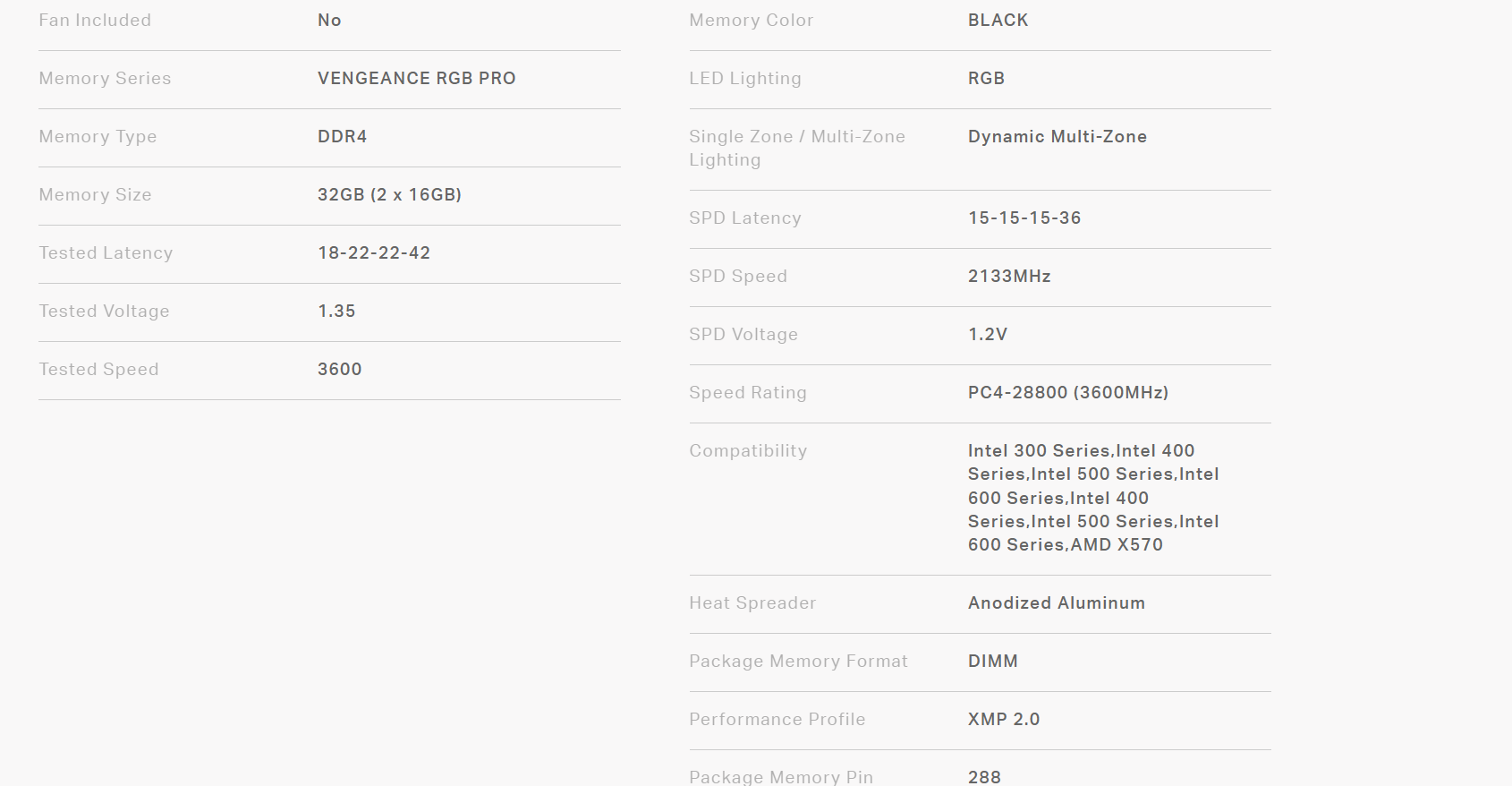 RAM CORSAIR VENGEANCE RGB PRO 3600 2X16 BLACKC18