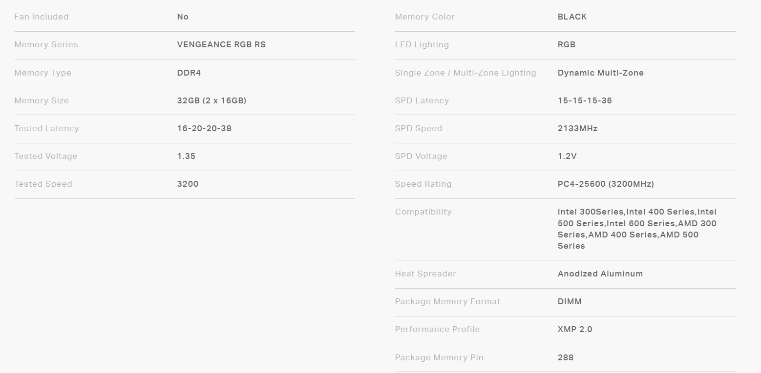 RAM CORSAIR VENGEANCE RGB RS 3200 2X16GB BLACK