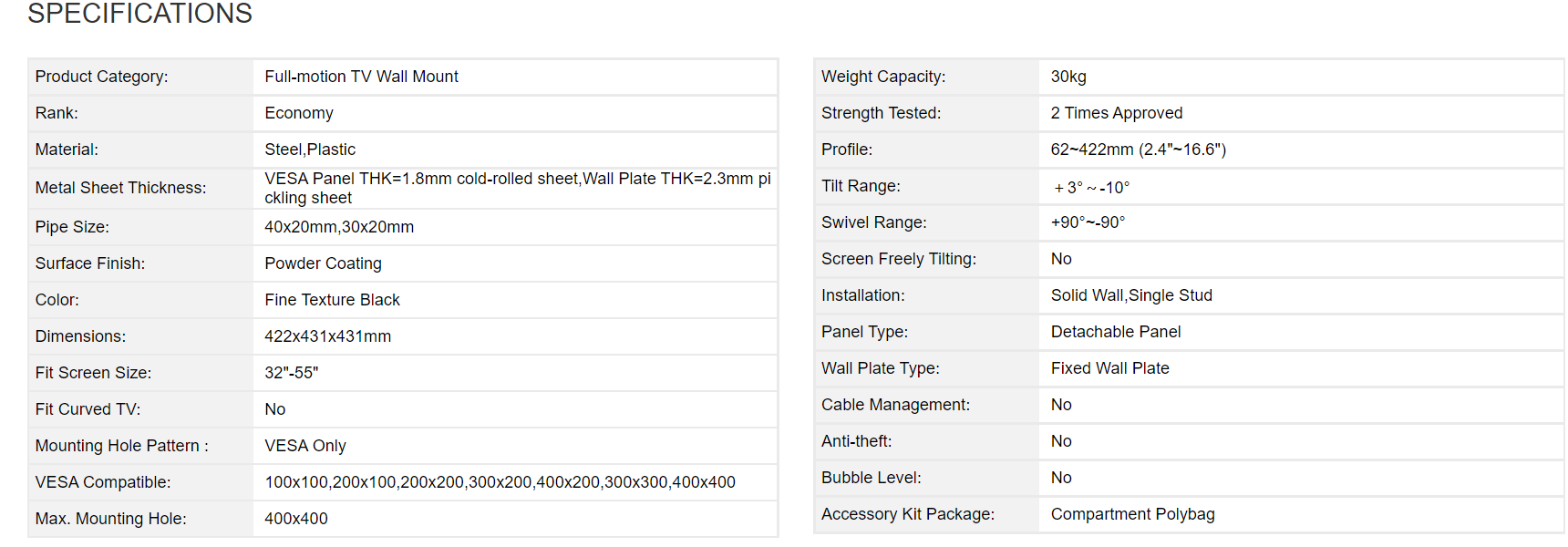 TV WALL MOUNT LUMI FULL MOTION KLA27-443 32″-55″